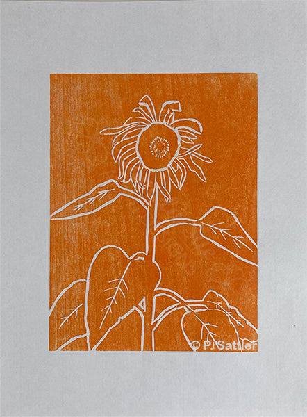 Sunflower orange - Alaska Woodcut Relief Prints