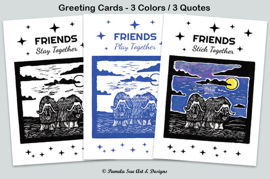Alaska Art Greeting Cards - Muskox Friends Cards